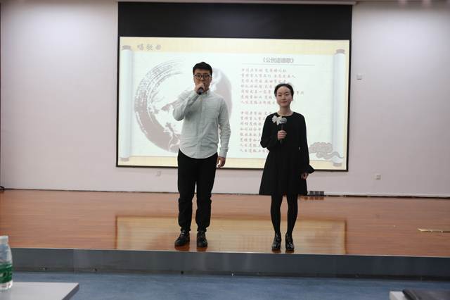 本期道德講堂包括唱歌曲、學模范、誦經典、講感悟、做承諾五個環節。